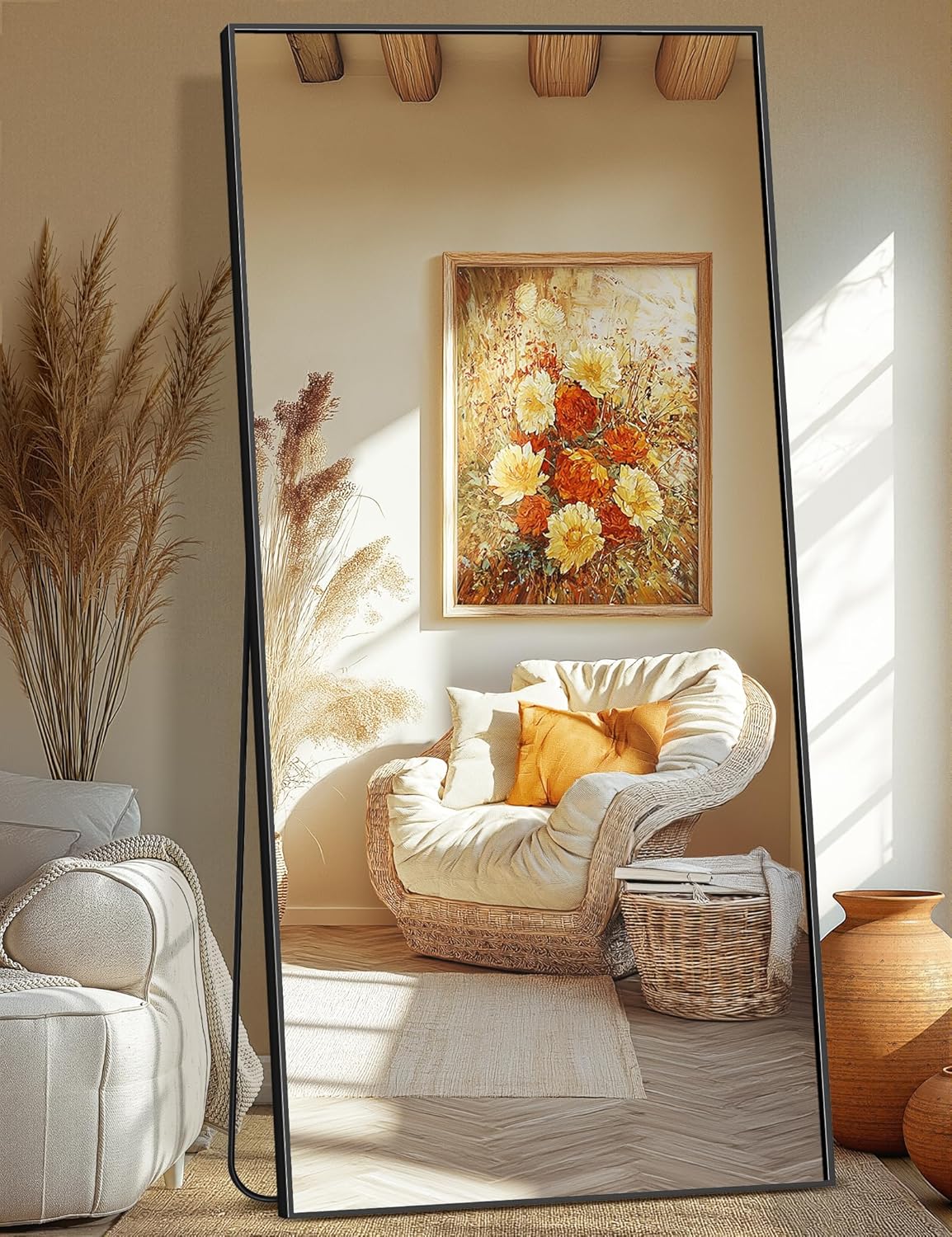 Oversized Full-Body View.Elegant Black Frame.